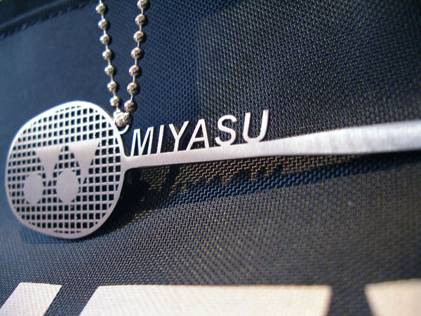 ネームタグ -バドミントン- 2008/11/21 金曜日2012/8/21 火曜日 by miyasu 創作 真鍮とステンレスでバドミントンのバッグにつけるアクセサリーを製作中 ネームを入れて完成(*^^)v お問い合せ用URL : お問い合せの際に上記URLをコピーして『お問い合せ内容』に貼り付けて頂ければ幸いです