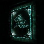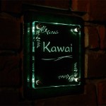 グリーンのフレーバータイルにワイルドストロベリーを彫刻したガラスを重ねました。 漢字はタイルに彫刻して読みやすくしました。 暗くなると自動でLEDが優しく光り彫刻部を照らします。 福井県に送ります。