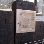 枕木の門柱を立ててLED仕様の表札を取り付けました。 ソーラー部は違う場所(10m)に設置しました。