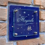 タイルとガラスに星を散りばめました。 漢字はタイルにアイボリーで着色しています。 埼玉県に送ります。