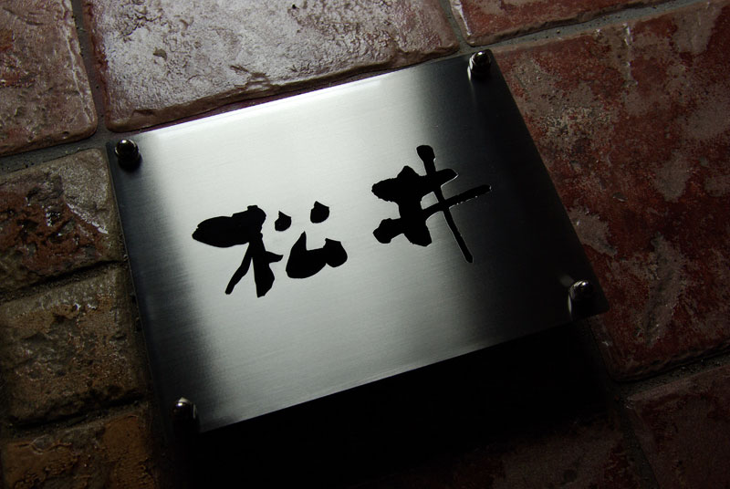 ステンレス表札 和書体 2009/6/10 水曜日2013/2/19 火曜日 by miyasu ステンレス表札 ステンレスプレート和書体 素材を活かしたシンプルな表札・・・ 木の門柱に取付けられます。W200XH150 t3 静岡県に送ります。 お問い合せ用URL : お問い合せの際に上記URLをコピーして『お問い合せ内容』に貼り付けて頂ければ幸いです