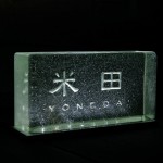 オブジェのような表札 無垢のガラス魂の素材に彫刻しています。 夜は専用LED照明で文字が浮き上がります。 奈良県に送ります。