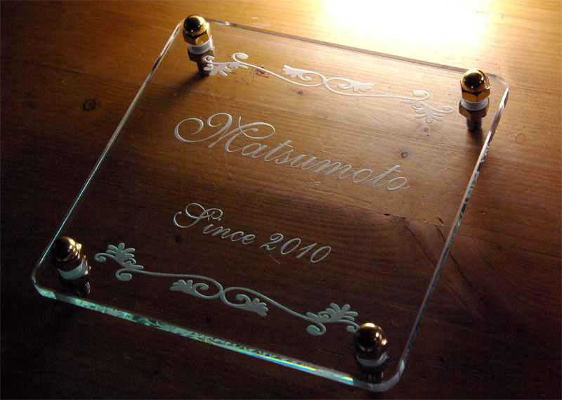 クリスタルガラス表札 2010/2/14 日曜日2012/8/25 土曜日 by miyasu クリスタルガラス表札 ガラスのみの表札 17X17cm 彫刻した文字だけが壁面の上に浮き上がり 影が表情を豊かに演出します。 お問い合せ用URL : お問い合せの際に上記URLをコピーして『お問い合せ内容』に貼り付けて頂ければ幸いです