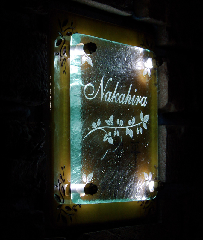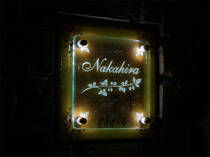 Free-Style表札 LED仕様 2010/3/20 土曜日2012/8/21 火曜日 by miyasu ガラス表札【LED仕様】《AC電源》 フレーバータイル(アプリコット)に手作りのオリジナルYURAGIガラスを合わせました。 夜はLEDが自動点灯してガラスの彫刻を優しく照らします。 滋賀県に送ります。 お問い合せ用URL : お問い合せの際に上記URLをコピーして『お問い合せ内容』に貼り付けて頂ければ幸いです