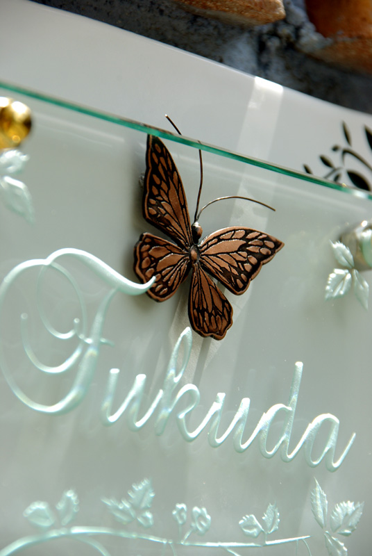 Free-Style表札 LED仕様 銅の蝶 2010/5/7 金曜日2012/8/21 火曜日 by miyasu ガラス表札【LED仕様】《AC電源》 LEDガラス表札は昼と夜の表情がまったく違う表札です。 銅の蝶を止まらせて仕上がりました。 千葉県に送ります。 お問い合せ用URL : お問い合せの際に上記URLをコピーして『お問い合せ内容』に貼り付けて頂ければ幸いです