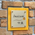 姫路城の瓦と同じ素材、窯元で焼いたオリジナルの平板をベースに シンプルに漢字で仕上げました。 東京に送ります。