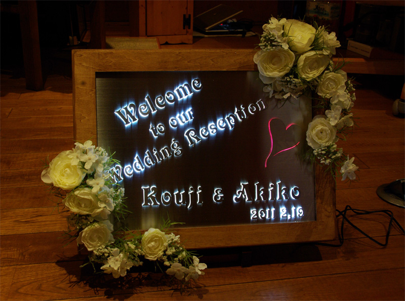 Welcomeボード 2011/2/18 金曜日2012/12/3 月曜日 by miyasu 創作 welcomeボードステンレス切り文字 ステンレス切り文字&アクリルにLEDを組み込んだWELCOMEボード お問い合せ用URL : お問い合せの際に上記URLをコピーして『お問い合せ内容』に貼り付けて頂ければ幸いです