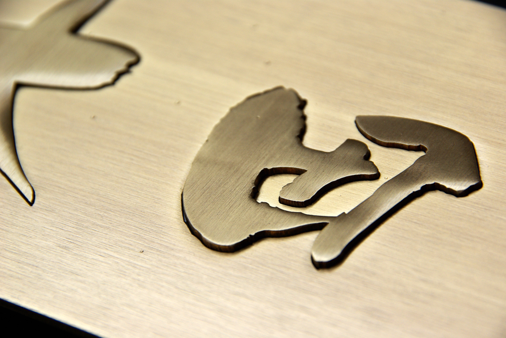 厚みの違う真鍮をはめ込んだ凸文字表札
