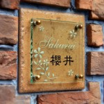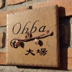 ご希望のサイズで製作したテラコッタ表札(15X15) 温もりのある素焼きの陶板に深く彫刻しています。 愛知県に送ります。