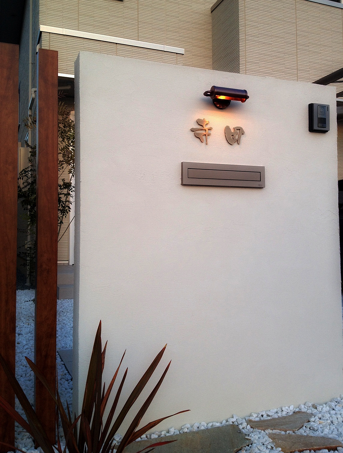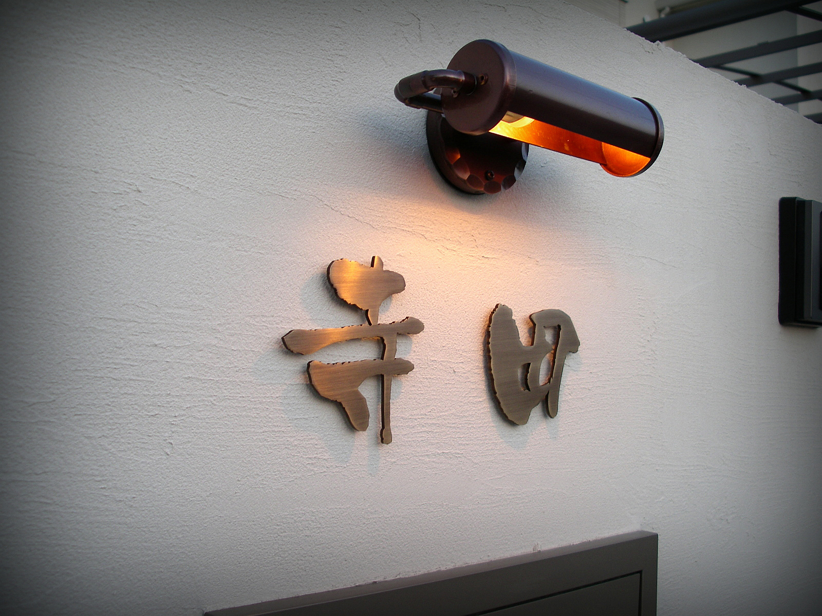 真鍮創作表札 2012/3/31 土曜日2012/8/21 火曜日 by miyasu 創作表札 いぶし真鍮の切り文字表札と銅製の表札灯を市内に取り付けに行きました。 バランスを見ながら慎重に配置を決めて固定します。 表面をいぶした真鍮は高級感があって昔からあるような存在感です。 お問い合せ用URL : お問い合せの際に上記URLをコピーして『お問い合せ内容』に貼り付けて頂ければ幸いです
