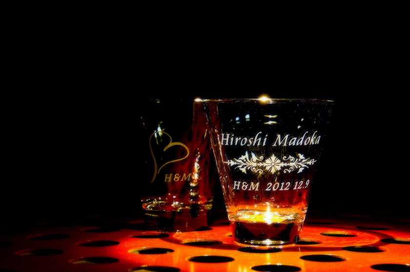 放送で紹介された完成した引き出物のグラスです