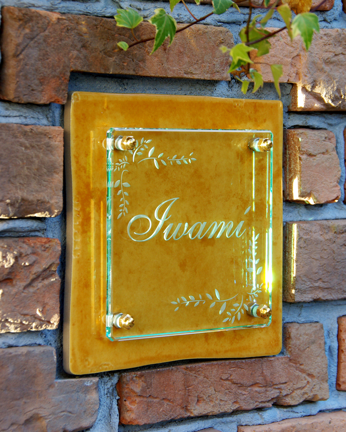 Free-Style表札 五面体カット 2012/12/6 木曜日2012/12/6 木曜日 by miyasu フリースタイル表札 アプリコット五面体カット 電話で打ち合わせを重ねご希望を形にしました。 明るいアプリコットのタイルに側面を五面体にカット、研磨した ガラスを重ねています。 iのリーフはアクセント・・・?枕木の門柱に取り付けられます。 埼玉県に送ります。 お問い合せ用URL : お問い合せの際に上記URLをコピーして『お問い合せ内容』に貼り付けて頂ければ幸いです