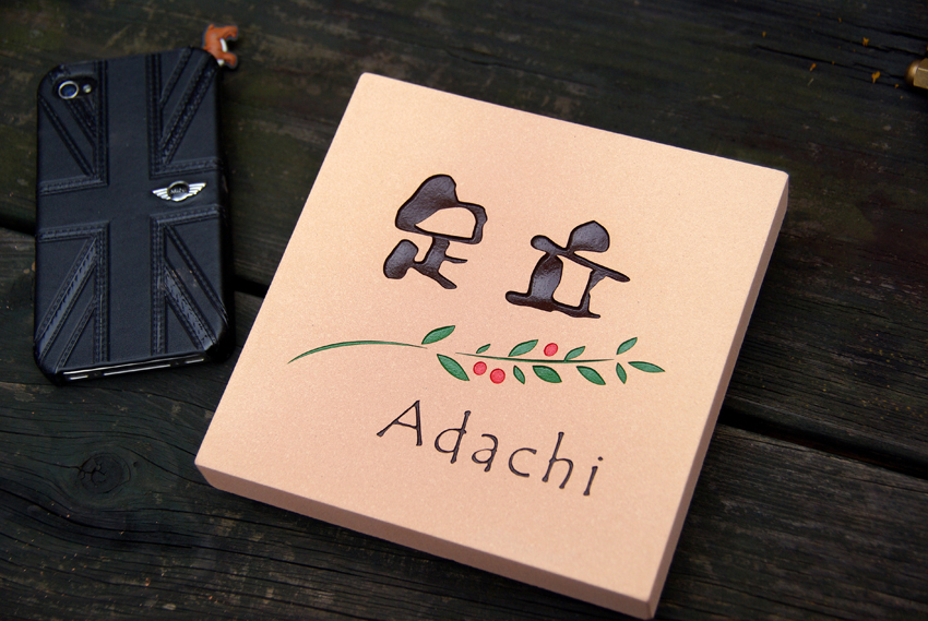 テラコッタタイル表札 14X14cm 2012/12/17 月曜日2013/2/20 水曜日 by miyasu テラコッタ表札 オーダーサイズテラコッタ 既成の門柱にあわせてカットしたテラコッタタイルの表札 あじわいがあって温もりのある素材です 工具(ドリル)貸し出し 千葉県に送ります。 お問い合せ用URL : お問い合せの際に上記URLをコピーして『お問い合せ内容』に貼り付けて頂ければ幸いです