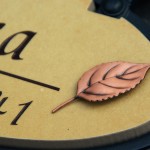 機能門柱の表札取り付け部を送っていただきデザイン、製作しました。 銅のリーフをアクセントに・・・ 東京に送ります。