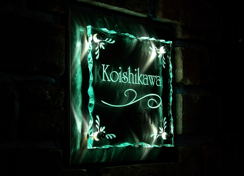 Free-Style表札 LED仕様 ステンレスベース 2013/2/23 土曜日2013/2/24 日曜日 by miyasu ガラス表札【LED仕様】《AC電源》 アートガラスステンレスベース 暗くなると点灯する光がベースに映って綺麗に見えます。 東京に送ります。 お問い合せ用URL : お問い合せの際に上記URLをコピーして『お問い合せ内容』に貼り付けて頂ければ幸いです