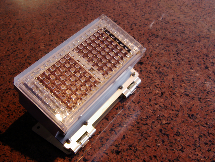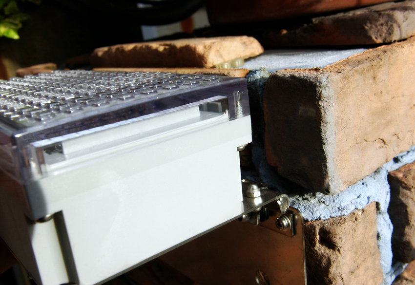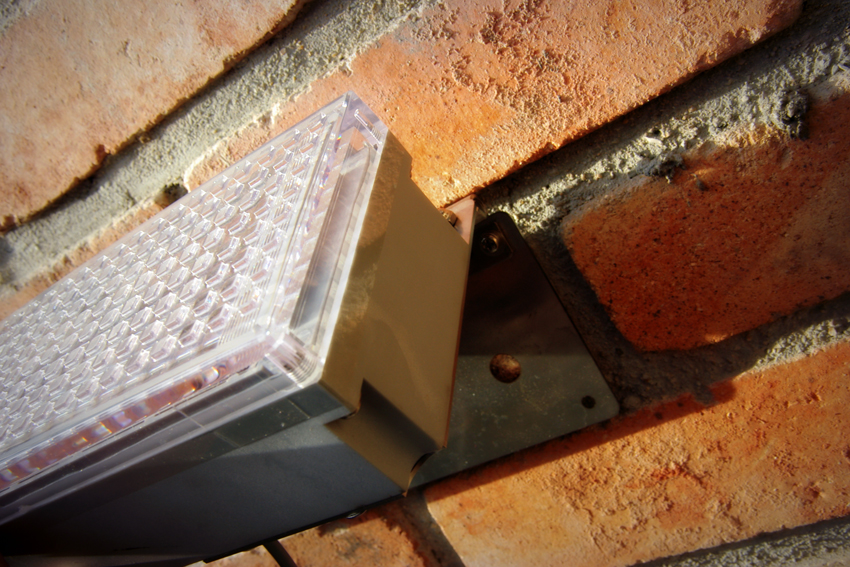 門柱の上に置いたり、裏面に直角に取り付けてワンタッチの防水コネクタでLED表札と繋ぎます。