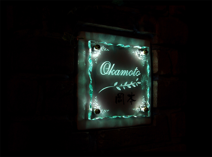 表札の付け替えにLED仕様のソーラー電源タイプの表札を選んでいただきました。