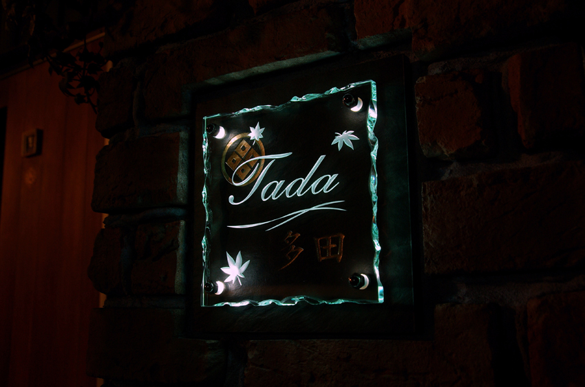 Free-Style表札 LED仕様 家紋 2014/2/3 月曜日2014/2/5 水曜日 by miyasu ガラス表札【LED仕様】《AC電源》 アートガラスブラック家紋 和調ブラックタイルに『丸に隅立て四つ目』の家紋を彫刻(シャンパンゴールド) アートガラスに楓をレイアウトしました 暗くなるとLEDが自動点灯してガラスの彫刻が浮き上がります 市内に送ります。 お問い合せ用URL : お問い合せの際に上記URLをコピーして『お問い合せ内容』に貼り付けて頂ければ幸いです