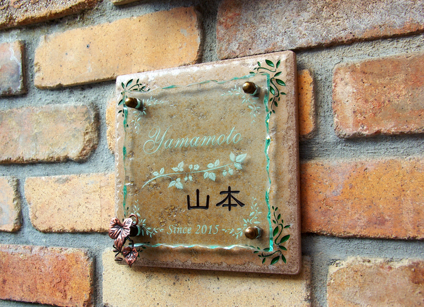 Free-Style表札 アートガラス 2014/11/3 月曜日2014/11/4 火曜日 by miyasu FREE-STYLE表札(フリースタイル表札) アートガラスアンティークタイル銅のアイビー アンティークタイルにアートガラスの組み合わせ 来年(2015年)の表札のご注文をいただきました 表札は門柱とのバランスが重要になってきます 出来れば門柱が出来るまでに手元にあった方が ポストやインターホンの配置が決めやすくなります 青森県に送ります お問い合せ用URL : お問い合せの際に上記URLをコピーして『お問い合せ内容』に貼り付けて頂ければ幸いです