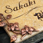 和調ブラックタイルにアートガラス 漢字は浮き彫り、シャンパンゴールドの着色 昼と夜の表情が変わります 三重県に送ります