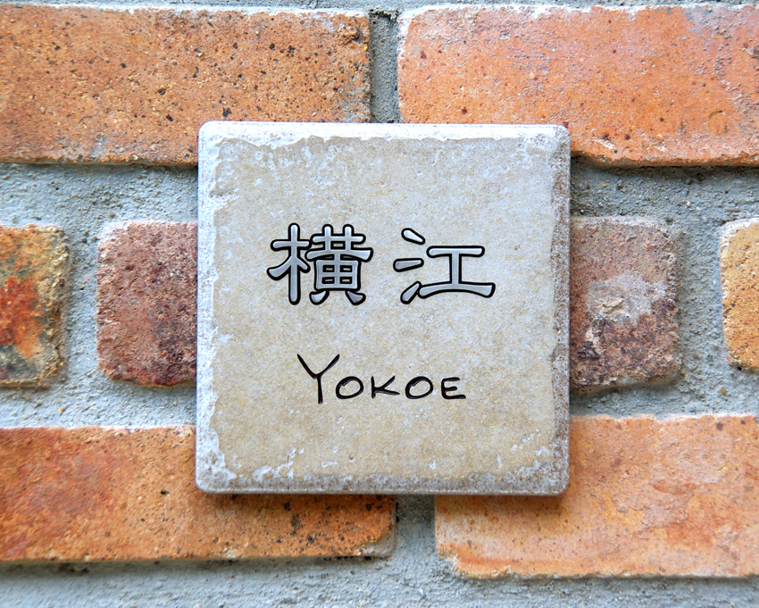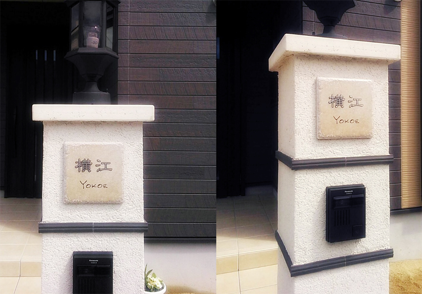 白いタイルの浮き彫り…風水的にいいと言われる表札