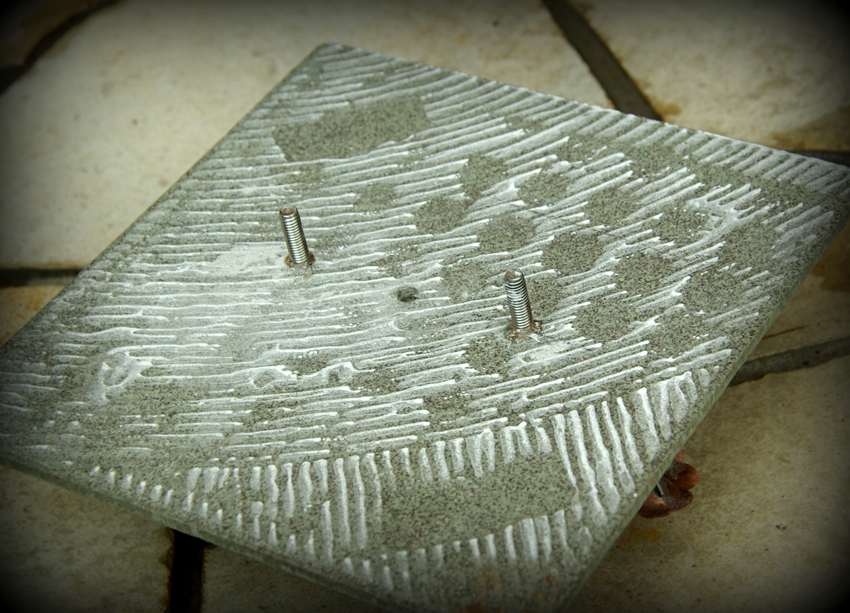 味わい深い緑青のタイルにアイボリーで着色しました。