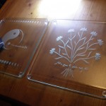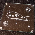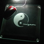月の満ち欠け、タオマークのデザインで製作 表面は汚れない特殊加工のガラスです。 ↑グッズとして試作依頼があり製作しました。(非売品)↑