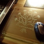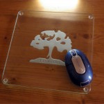 表面処理した汚れがつかないガラスのマウスパッド・・・ 光化学式でも大丈夫です。 プレゼント用に製作しました。