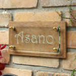 ガラスのみの表札 17X17cm 彫刻した文字だけが壁面の上に浮き上がり 影が表情を豊かに演出します。