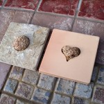 テラコッタタイルを使った結婚式で使うウェルカムサインを製作中です。 ハート型にくり貫いたテラコッタに多肉植物をアレンジしてお客様を迎えます。 まずはタイルをカットして・・・