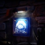 水ゴケと土を亀甲網で包みタイルに固定して多肉植物のアレンジを作りました。 HASを利用して壁飾りにしました。 夜はライトアップで・・・