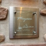チタングレーのタイルに彫刻したステンレスプレート