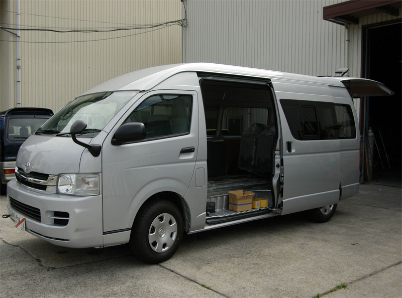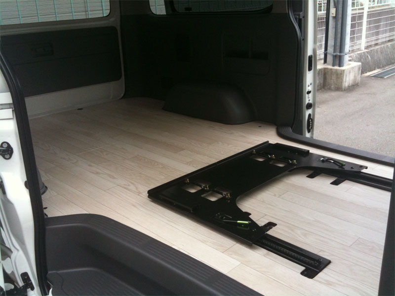 ハイエースに可動レールを設置し、