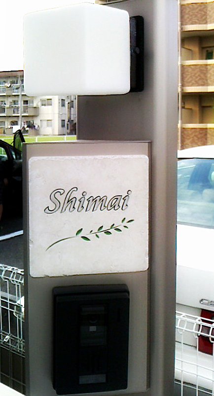 機能門柱用に製作したオーダーサイズのフリースタイル表札 16X16cm