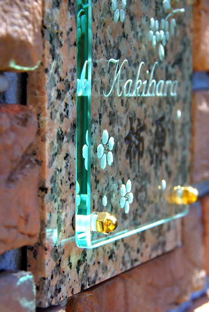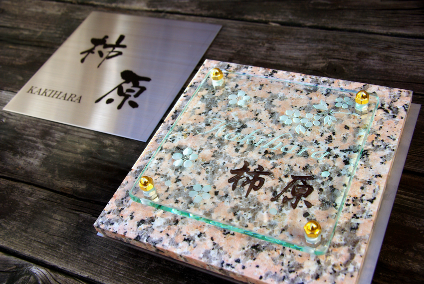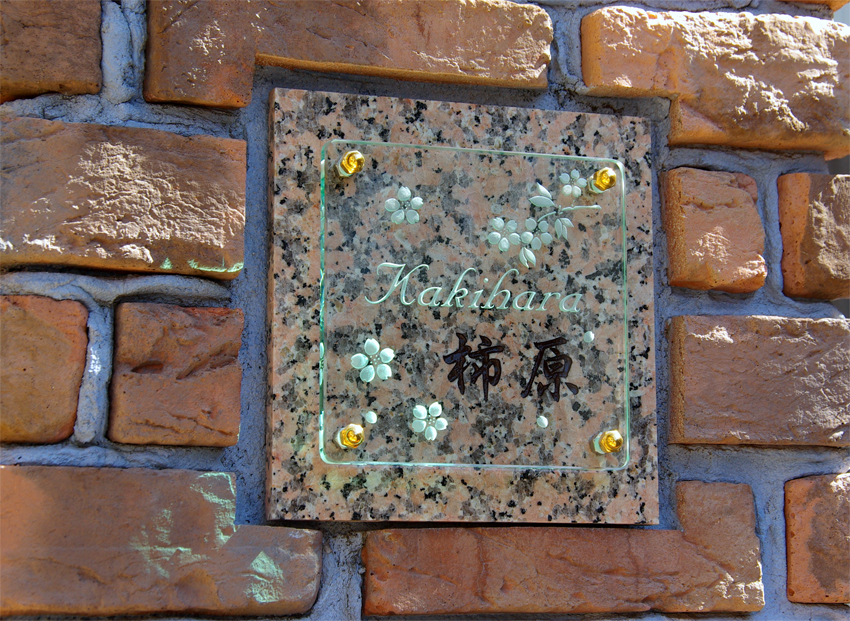 イメージに合った桜御影石を探し表札のベースにしました。