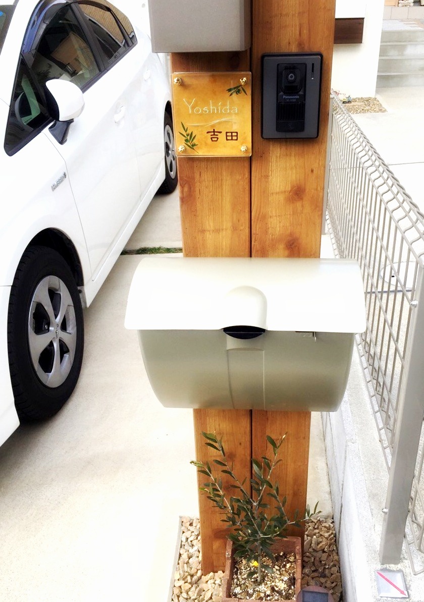アルミの一体型門柱に付けていただきました