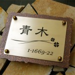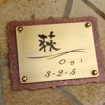 梨地仕上げのいぶし銅をベースに真鍮を重ねました。 切り抜いた真鍮板に厚みの違う真鍮の切り文字をはめ込んでいます 表面は漢字が縦のヘアーライン、プレート部が横のヘアーライン仕上げで 見る角度によって雰囲気が変 […]