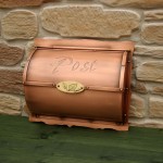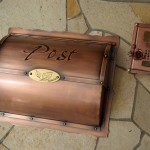 いぶし仕上げの銅製のポスト ご注文を頂いてから製作しています。 市内に送ります。