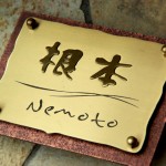 真鍮の切り文字を浮き上がらせた表札です。 縦と横のヘアーラインで見る角度によって見え方が変わります。 オリジナル銅製ポストは取っ手を番地に変えて・・・ 仙台に送ります。