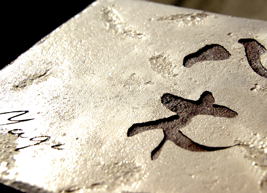 凹凸のある表面に深く文字を彫刻しています。