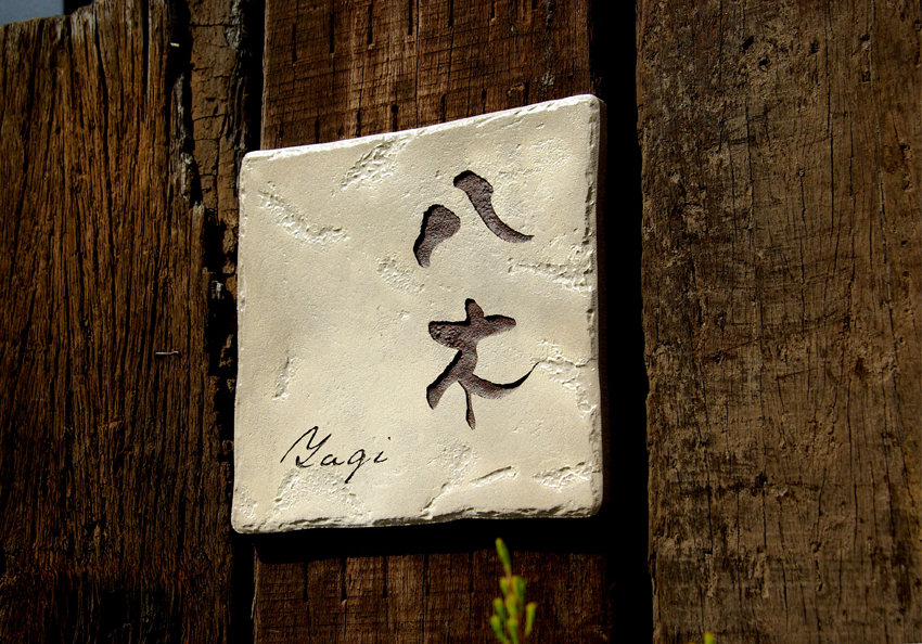 表情あるアルカイックタイルにシンプルに名前を彫刻しました