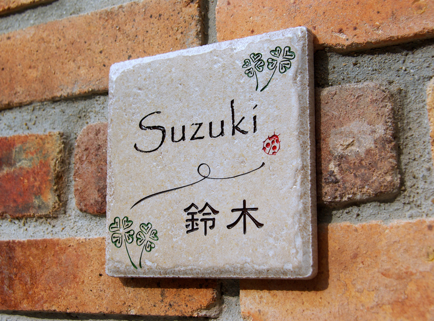アンティークタイル(薄茶)にシンプルにローマ字だけのデザインで仕上げました