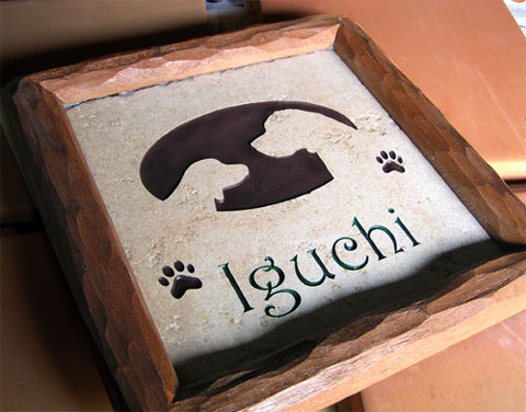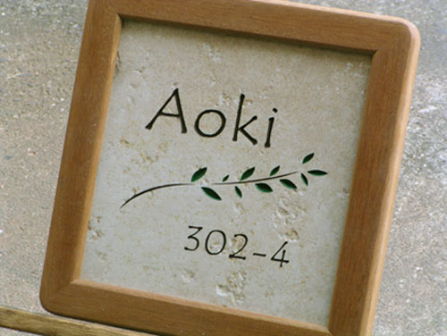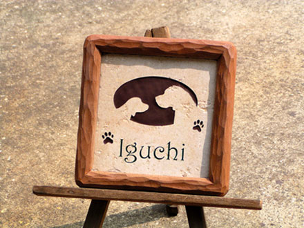 5年前に製作したウッドフレーム付きのテラコッタ表札とイーゼル