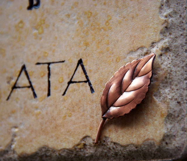 手作りの銅製リーフをアクセントに取り付けました。