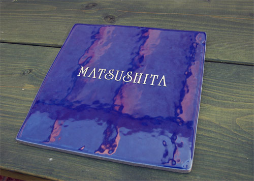 ~NEW~ 深い青色のフレーバータイルにステンレスの切文字を象嵌(ぞうがん)加工しました。