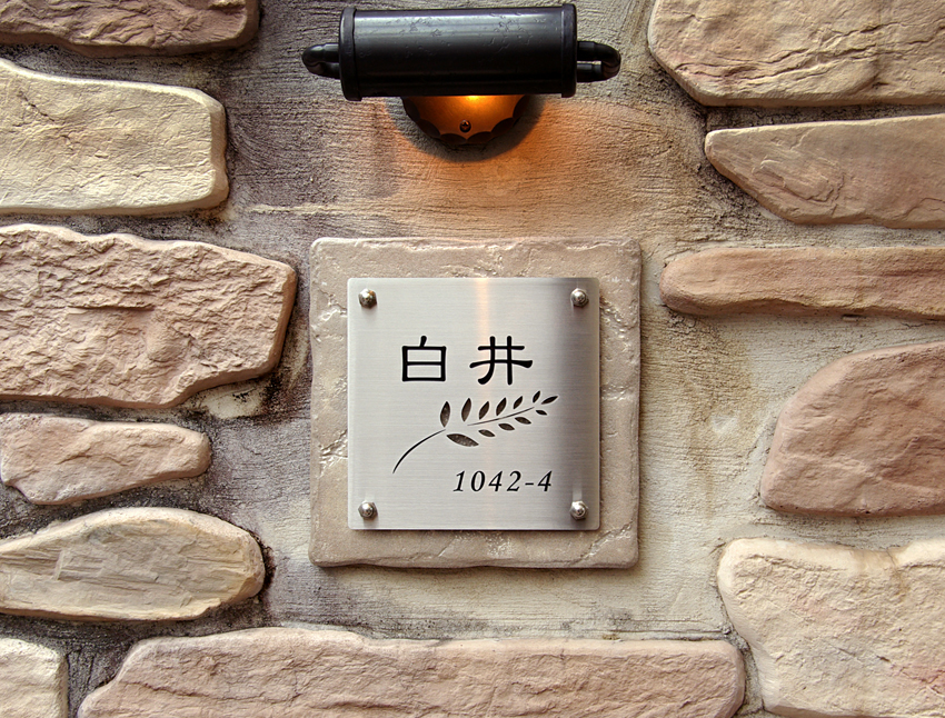 現状の写真を拝見し、インターホンの周りをステンレスプレートの表札にしました
