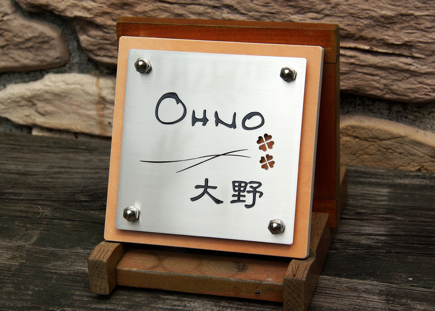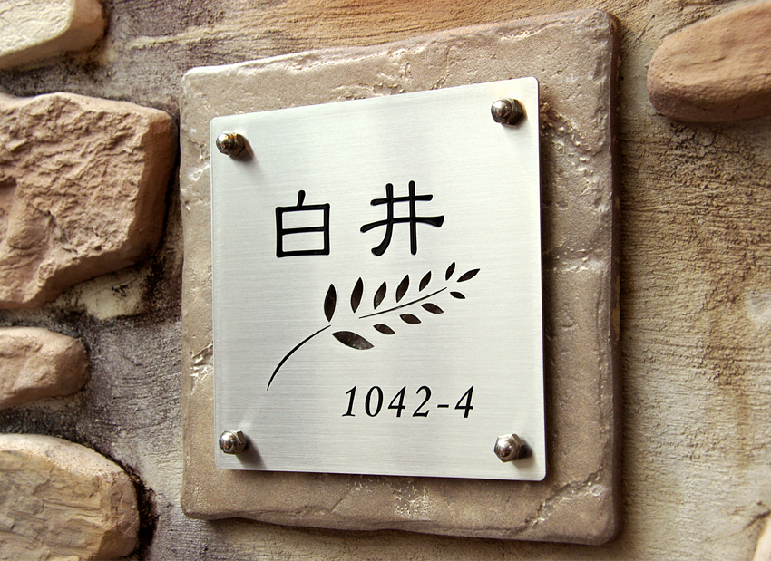 機能門柱用に製作した小さなステンレス表札 13X13cm