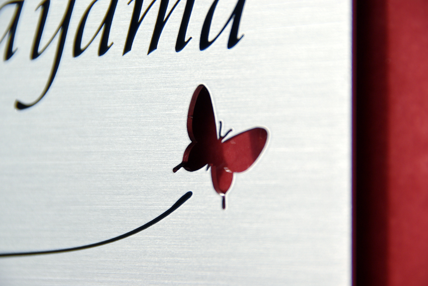 ランダムにカットしたステンレスにご希望の猫のシルエットをレーザーカットしました。