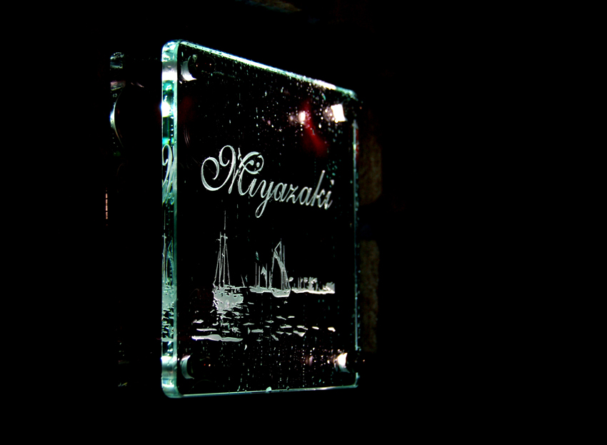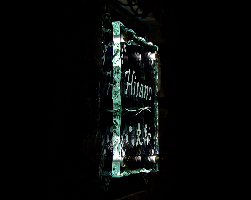 暗くなるとLEDが自動点灯しガラスの彫刻が浮かび上がります。