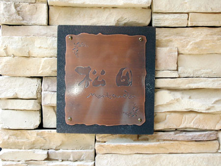 銅いぶし処理の表札 2002/6/6 木曜日2019/10/8 火曜日 by miyasu 銅・真鍮の表札 リフォームされたお家に表札を取り付けてきました。 手書きの筆書体をエッチングして、いぶし処理をしました。 matsuda 松田 お問い合せ用URL : このページで紹介した作品についてのお問い合わせは、上記URLをコピーして 『お問い合せ』のぺージの記入欄に上記「お問い合せ用URL」を貼り付けてご連絡ください。 ご質問、見積依頼、ご注文についても『お問い合せ』のページからヒロノクラフト公式LINE及びメールでお願いします。 ※ご利用いただく端末によっては、コメント送信後にエラー表示されるなどのうまく反映されない場合がございます。 その場合はLINEにて、ご連絡ください。